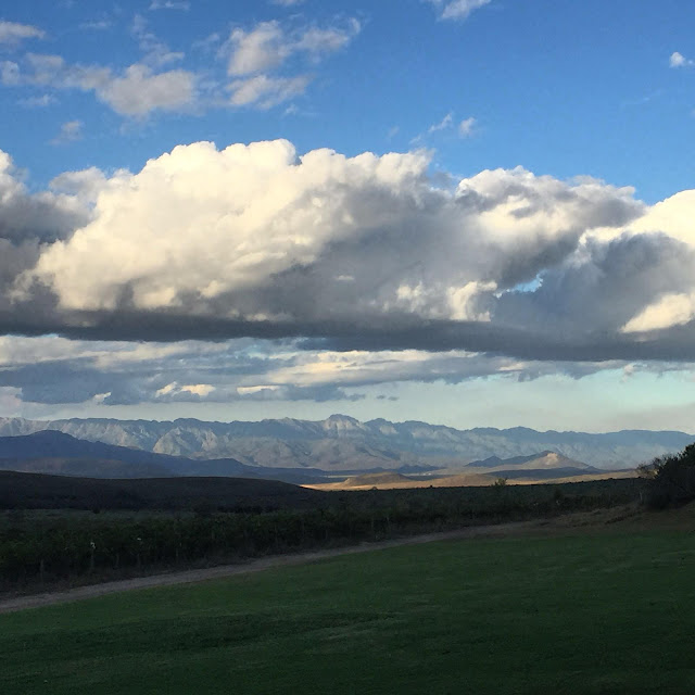 | The mountains go on forever and ever... framed by marshmallow clouds. |